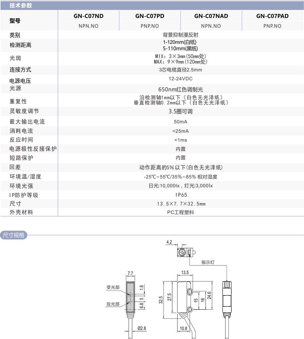 首頁 > 產品中心 >>傳 感 器 >> 光電開關 >> 小方型BGS光電開關GN-C07D